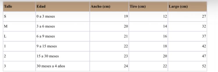 Te dejamos esta guía para que puedas comparar con alguna prenda que ya tenga tu peque.