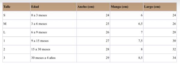 Te dejamos esta guía para que puedas comparar con alguna prenda que ya tenga tu peque.